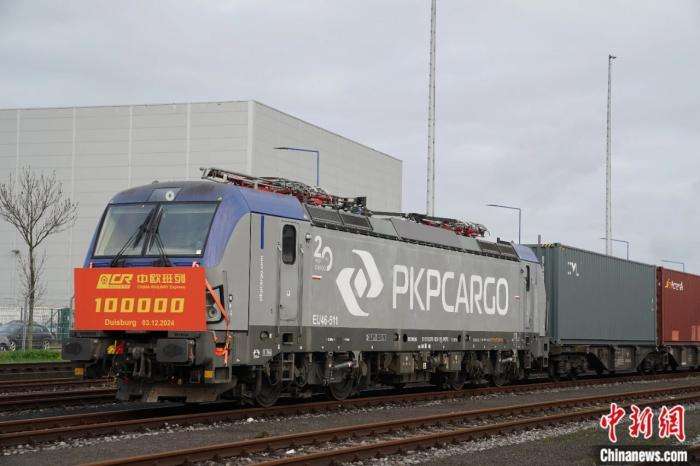 Departing from southwest China's Chongqing Municipality,the China-Europe freight train X8083arrives in Duisburg,Germany on Dec.3,2024,marking the100,000th trip of its kind. (Photo from CNS)