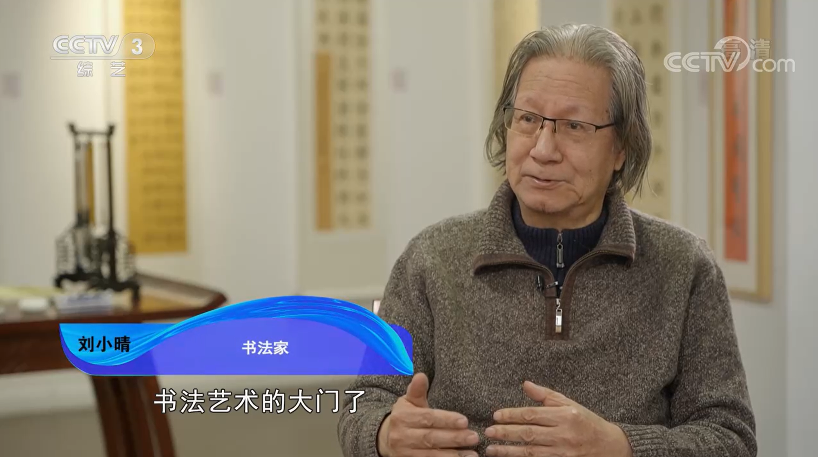 书法家刘小晴:他和我讲过一句话,取法乎上,仅得乎中,就是取法要取法高古,“隶宗秦汉,楷法晋唐”。所以这个老师把我带进了书法艺术的大门了,一上来就走比较正确的道路了。