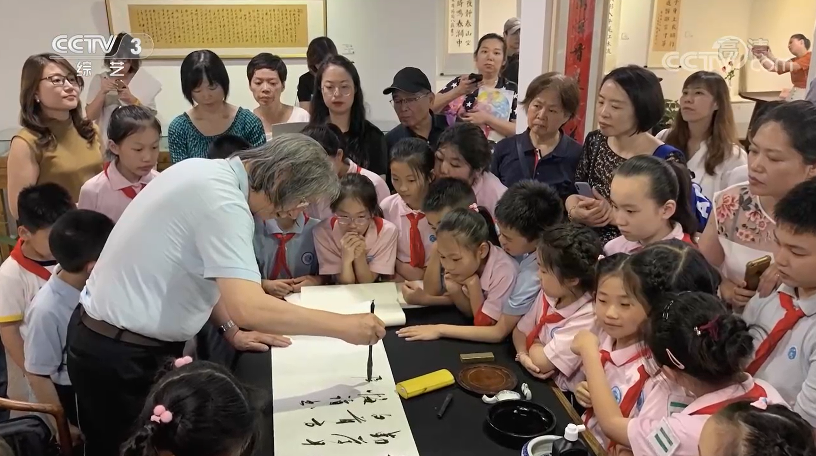 书法家刘小晴:书法要传承下去,因为中国书法是我们中华民族的一个重要的瑰宝,我的想法就是要从娃娃开始,所以我50年来上课到现在都没有间断,希望能够培养人才,能够把中国的传统的最经典的东西、最有民族特色的东西能够传承下去。