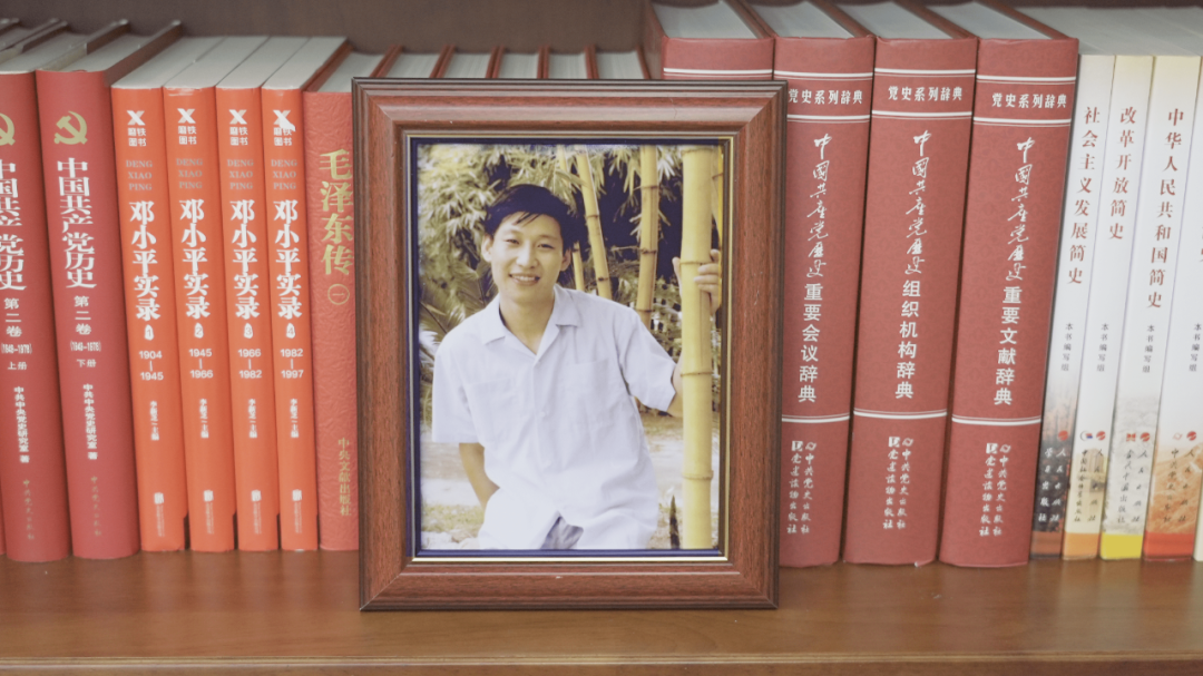 书架上,还增加了两张习近平总书记年轻时的照片。