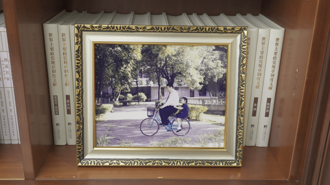 还有一张特别的照片,从习近平主席发表二〇一九年新年贺词时起,就一直摆放在书架上。