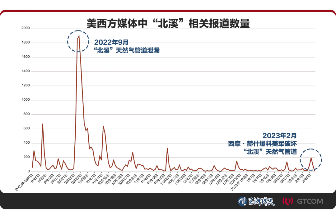 谭主将去年9月26日“北溪”天然气管道爆炸后,美西方媒体涉及“北溪”的所有报道进行大数据搜集整理,图中数据折线的前后落差之大,令人咂舌。