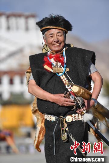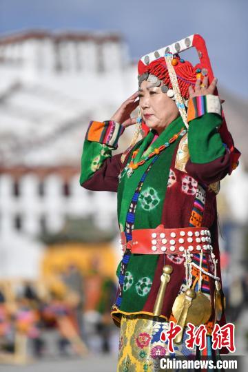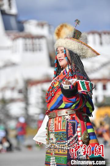 图为模特在展示藏族传统服饰。贡嘎来松摄