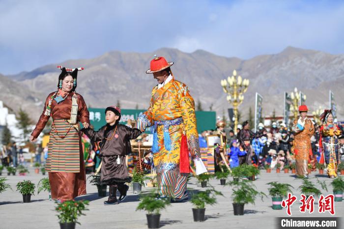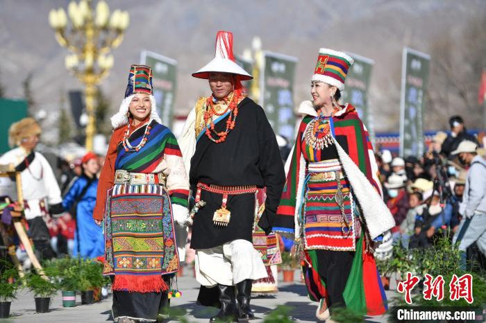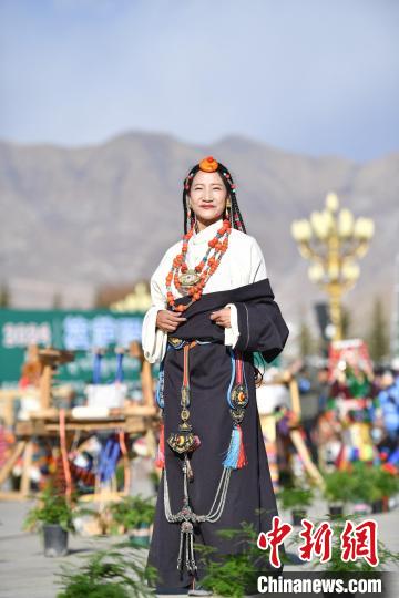 图为模特在展示日喀则传统服饰。贡嘎来松摄