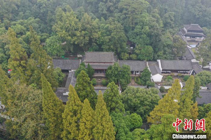 图为航拍白鹿洞书院,只见绿树环绕,古建成群,风景秀美。中新社记者刘力鑫摄