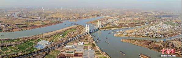 Cargo ships travel along the Grand Canal in Huai'an,Jiangsu Province. (CNS)