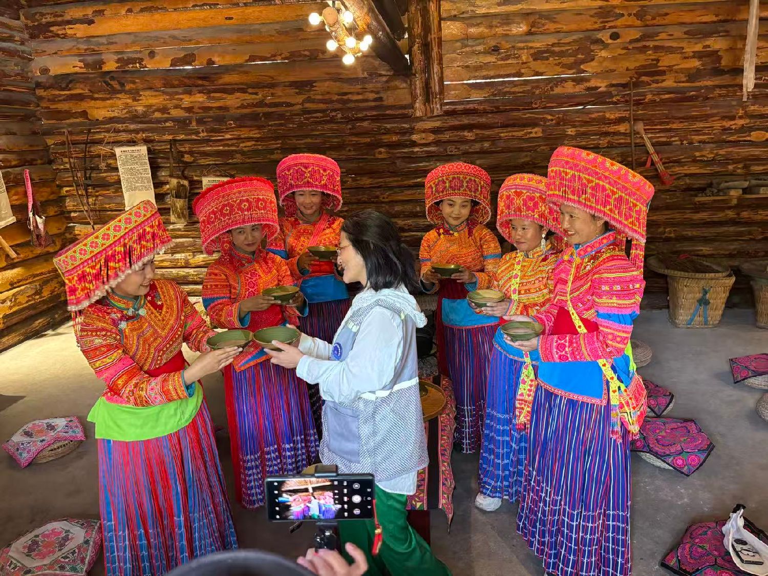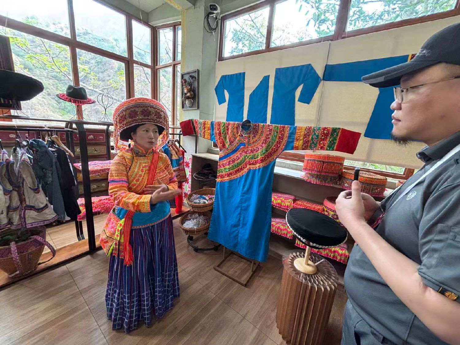在古色古香的传习中心,傈僳族研究会会长谷艳向参访团详细介绍了傈僳族的文化、生活等特色,以及她作为本民族的优秀人才,为推动非遗在内部实现活态传承,同时又向外拓展创新发展而做出的不懈努力。她欣喜地告诉记者,傈僳族服饰参加了2025年巴黎中法时装周,同时也确定了即将参加2026春夏巴黎时装周的官方日程,为中国非遗出海书写文化互鉴新篇章。