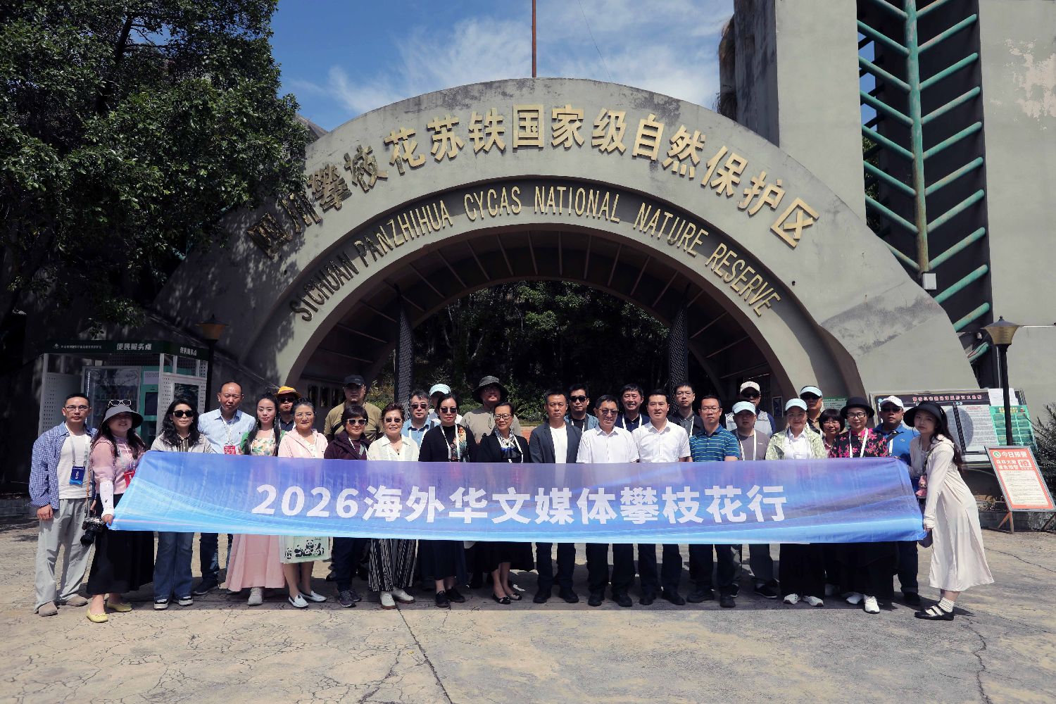 (匈牙利联合报/多瑙视野讯)4月9日,由四川省侨务办公室与中国新闻社四川分社联合组织的“2026海外华文媒体攀枝花行”走进四川攀枝花苏铁国家级自然保护区,海外华文媒体代表探访“植物活化石”—攀枝花苏铁这一珍稀濒危植物。该保护区位于攀枝花市西区、仁和区交界处,总面积1358.3公顷。每年3月至6月,近40万株攀枝花苏铁竞相绽放,金色花海铺满金沙江干热河谷,也是全球唯一每年大规模开花的野生苏铁群落。